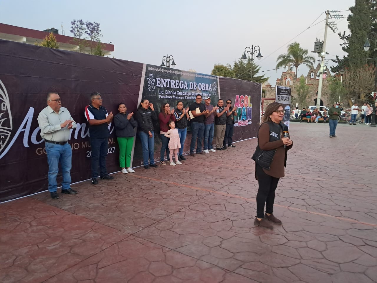 ACOLMAN (17 MARZO 2025).- Con una inversión cercana a los seis millones de pesos, la presidenta municipal Blanca Guadalupe Sánchez Osorio, inauguró la remodelación de la plaza central de San Marcos Nepantla.