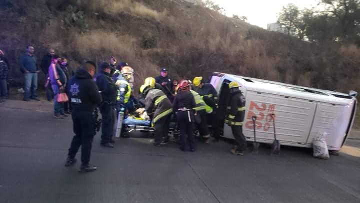 ATIZAPÁN DE ZARAGOZA (14 FEBRERO 2023). – Al menos nueve personas resultaron lesionadas luego de que una camioneta de pasajeros se volcara cuando circulaba por la carretera Atizapán-Nicolás Romero.