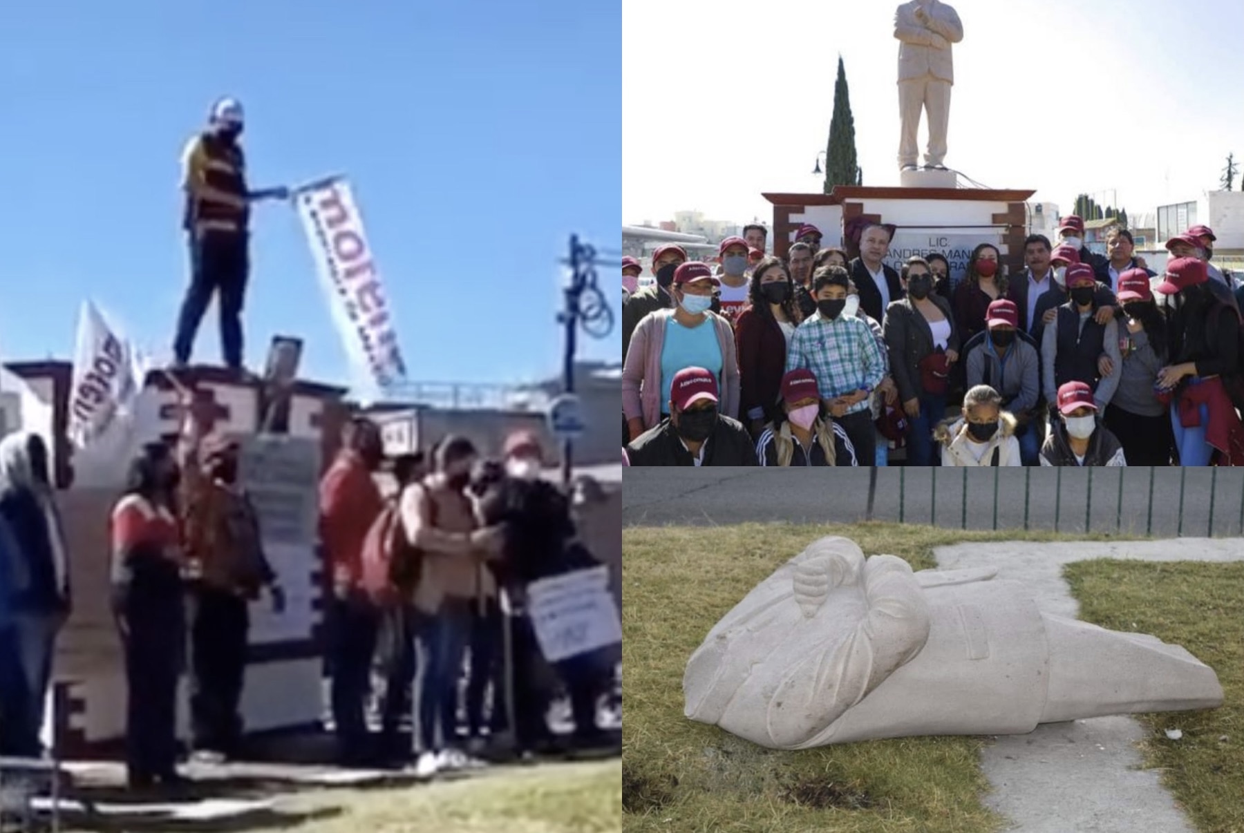 Simpatizantes de Morena exigen reparación de estatua de AMLO