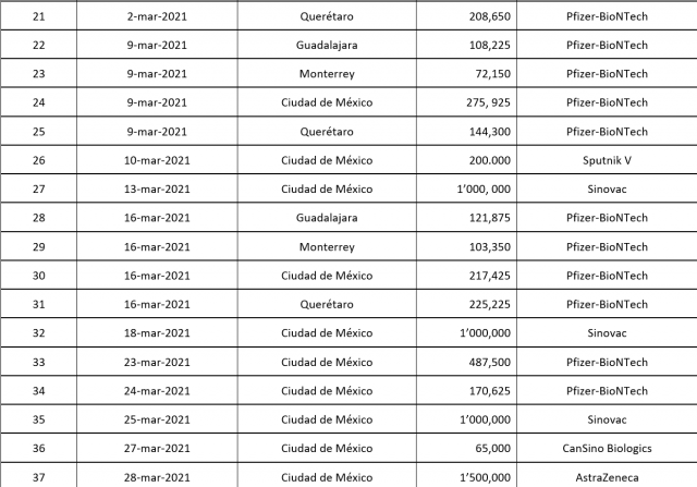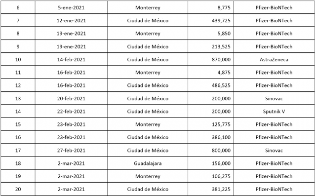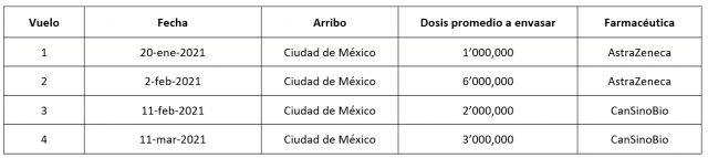 • 1 millón 200 mil de AstraZeneca, que completarán los 2.7 millones del acuerdo entre México y Estados Unidos.