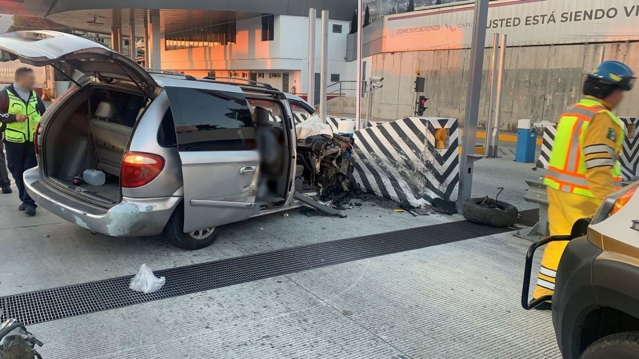 De acuerdo con reportes preliminares el conductor de una camioneta Chrysler se impactó contra el carril 19ª de la caseta tras perder el control de su unidad y debido al fuerte golpe, resultó lesionado y su automóvil terminó destrozado en la parte delantera.