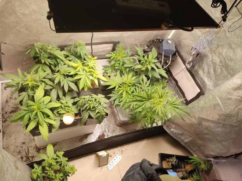 Al menos nueve cubetas que contenían hierba verde sembrada en tierra fueron encontradas, además, 16 macetas con el mismo vegetal, dos recipientes traslúcidos con tapa gris cada uno, con tres plantas verdes, 13 fragmentos de esponja, dos de ellas cubiertas con material sintético color blanco y 11 esponjas color café.