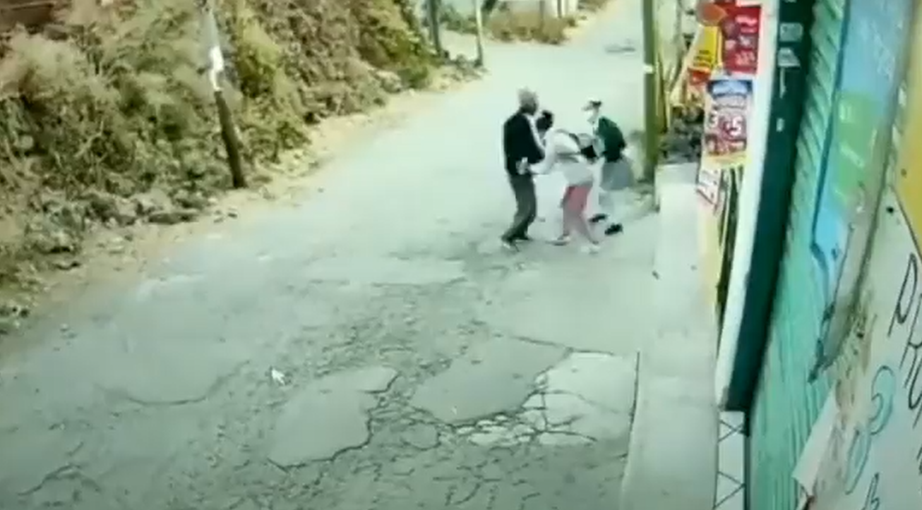 Los hechos se registraron en calles de esta alcaldía a la salida de la secundaria de la menor y en las imágenes se observa a ambas caminando tranquilamente cuando el hombre se les acerca al parecer discutiendo y comienza a atacarla.