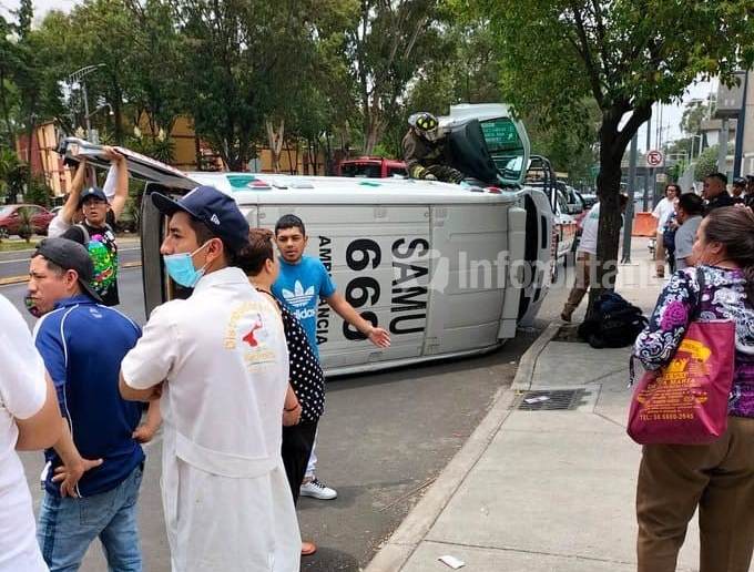 CIUDAD DE MÉXICO (09 MAYO 2023). – Servicios de emergencia capitalinos realizaron una fuerte movilización en calles de la alcaldía Coyoacán luego de que una ambulancia que se encontraba en servicio volcara con paramédicos y un paciente a bordo.