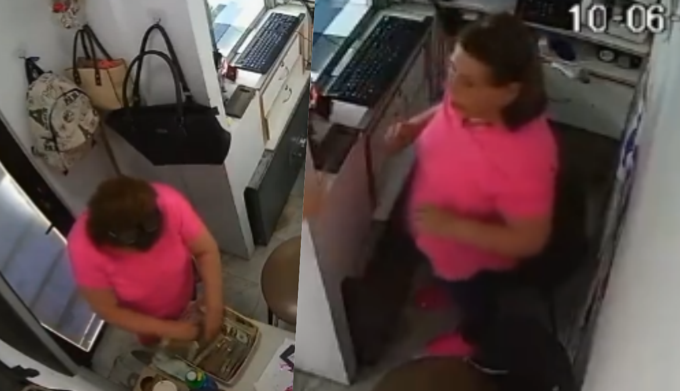 En el video se puede ver cuando una mujer (que aparentemente es la empleada de la misma) comienza a llevar una mochila con dinero repartido por todo el local, llegando a un total de 750 mil pesos.