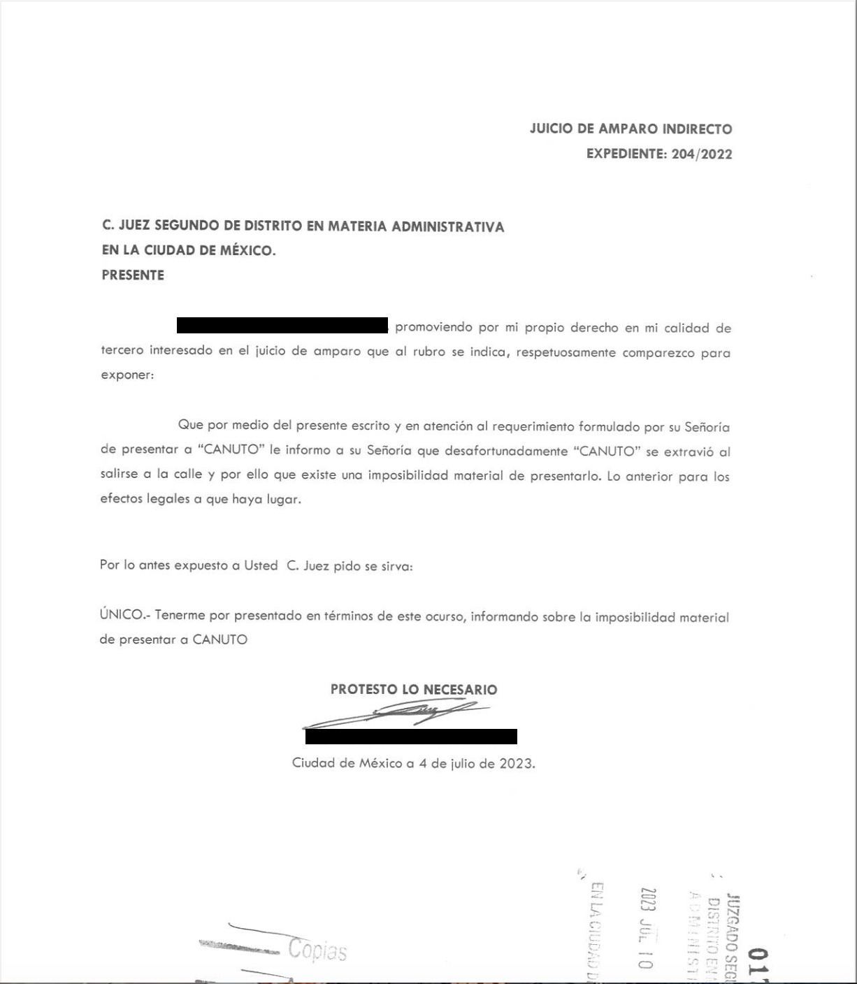 Finalmente, presentaron en el juzgado un escrito informando que no pueden presentar a Canuto porque «se les ha extraviado».
