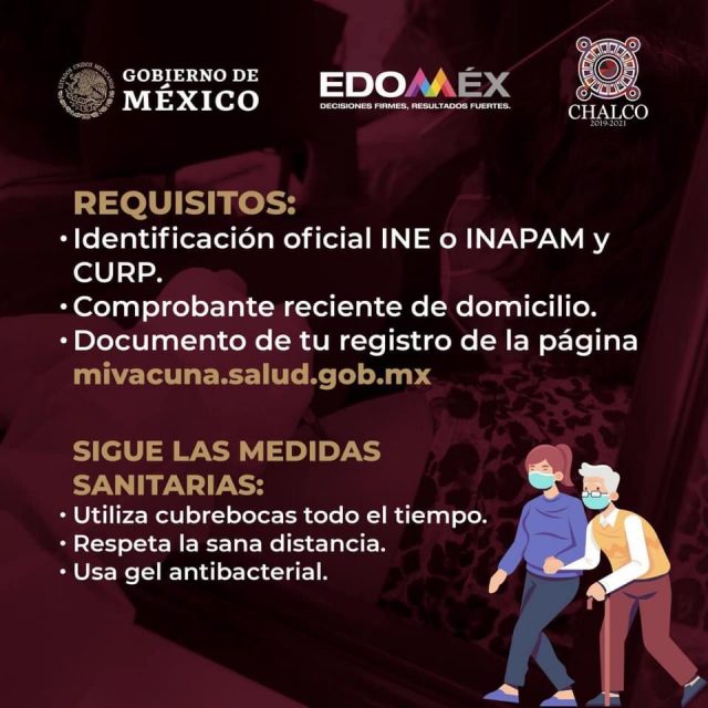 Mientras tanto, los requisitos para los interesados serán como en cada ocasión: una identificación oficial INE o INAPAM y CURP, comprobante reciente de domicilio, documento de registro en la página www.mivacuna.salud.gob,mx .