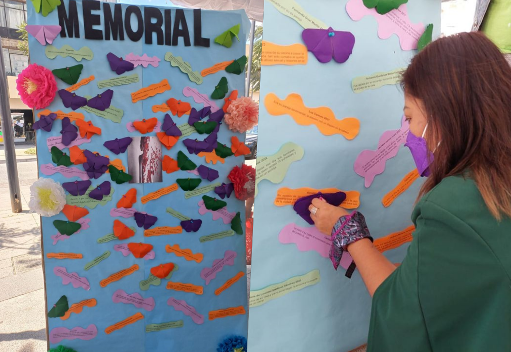Cada una de las participantes colocó una mariposa de papel en el caso que más las sensibilizó y se realizaron cánticos por todas esas mujeres y niñas que ya no se encuentran con vida.