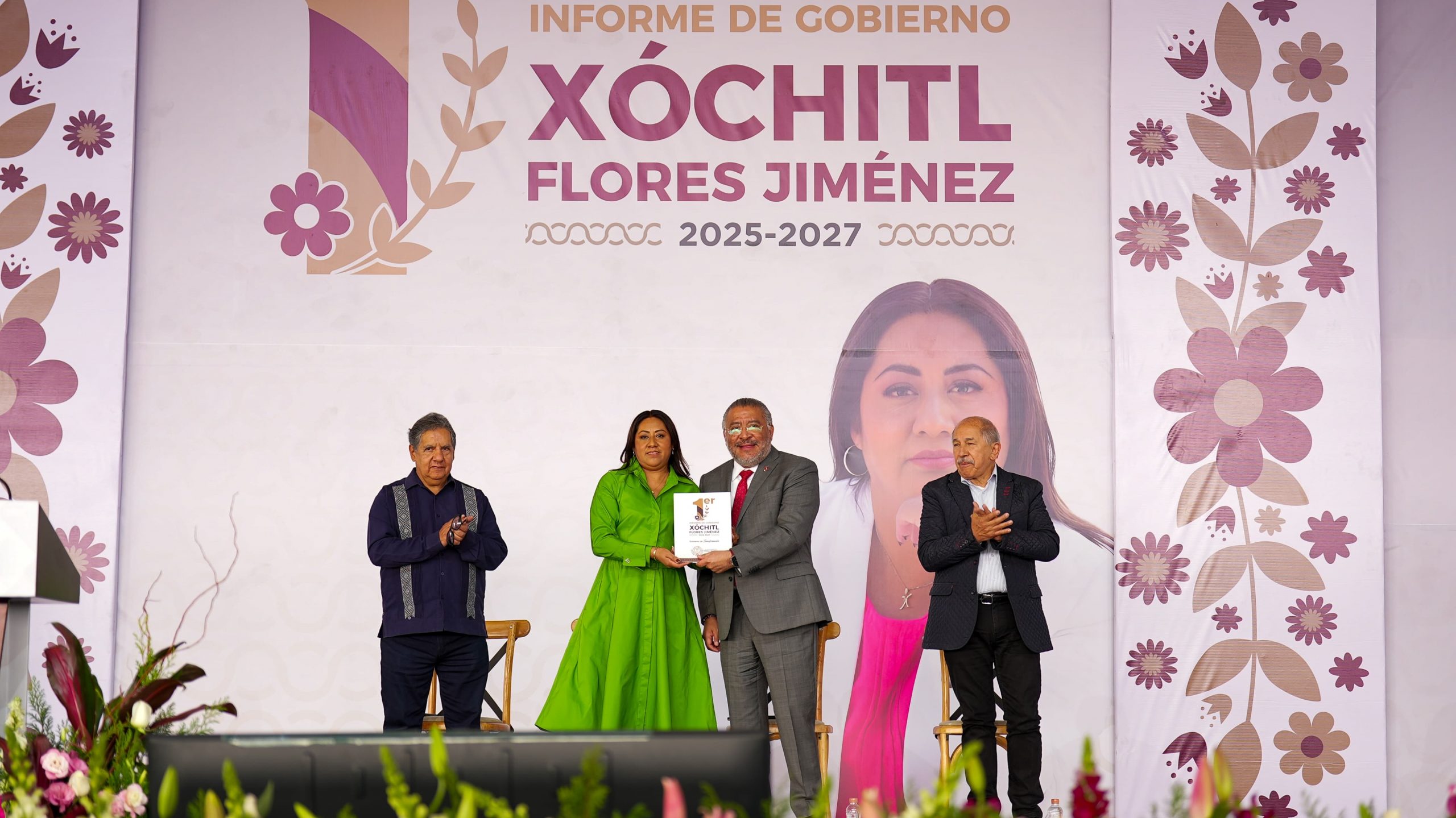 Pero el logro más grande de este informe no son las cifras, sino la voluntad inquebrantable de un pueblo unido. Y ahora, la responsabilidad es doble: la de cuidar lo construido y la de continuar con la Transformación de nuestro municipio”, expresó la presidenta municipal Xóchitl Flores Jiménez ante miles de chimalhuaquenses y autoridades federales y estatales reunidos en el Recinto Ferial.