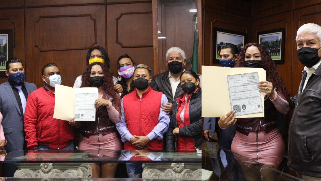 Dulce Saori, de 40 años de edad, recibió de manos del titular de la oficialía del Registro Civil No. 1, Josué Bastida Buendía, su documento, con el que quedó plasmado su nombre e identidad de género, a fin de brindar garantías jurídicas que la respalden.
