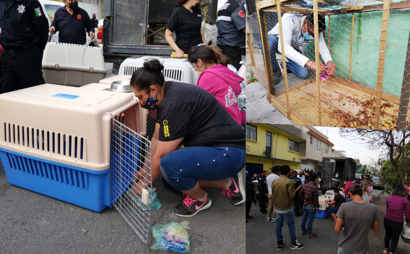 CHIMALHUACÁN (05 FEBRERO 2022). – Más de 60 ejemplares entre perros y gatos, fueron rescatados de un domicilio la tarde de este sábado por autoridades del municipio de Chimalhuacán.
