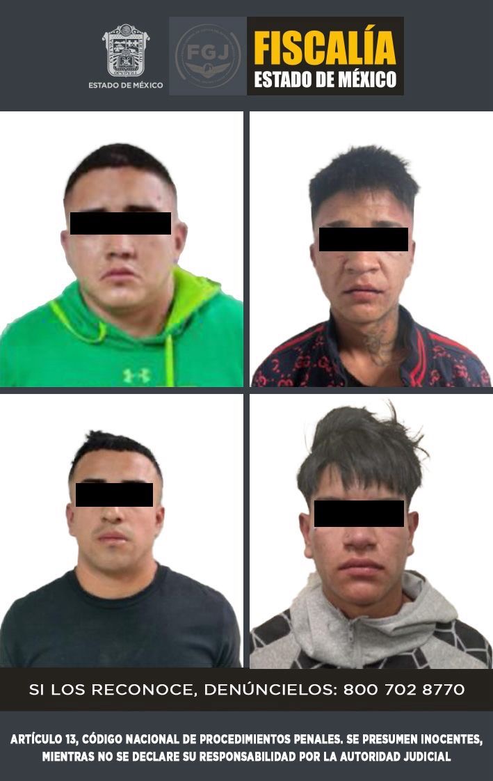 Cuatro individuos identificados como Irving “N”, Christopher Eduardo “N”, Justin Adrián “N” y Eder Roberto “N”, fueron vinculados a proceso, una vez que la Fiscalía General de Justicia del Estado de México (FGJEM) acreditó su posible intervención en el delito de homicidio calificado en agravio de tres personas, hechos registrados en esta municipalidad.