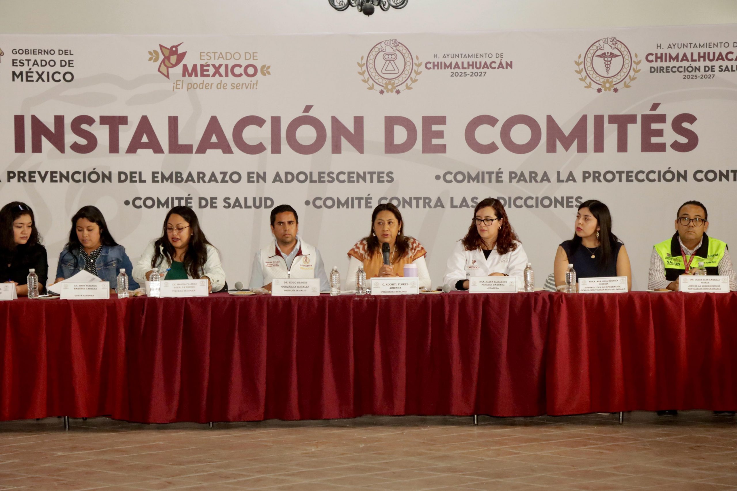 CHIMALHUACÁN (26 FEBRERO 2025).- Como parte de las estrategias para atender distintas necesidades de salud entre la población, la presidenta municipal de Chimalhuacán, Xóchitl Flores Jiménez, encabezó la instalación de los Comités de Salud Municipal, de Riesgos Sanitarios, contra las Adicciones y del Grupo Municipal para la Prevención del Embarazo Adolescente.