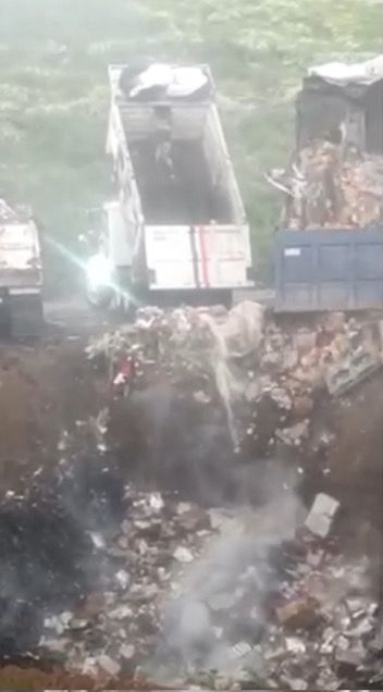 Dijo que primero fumigan la bodega, posteriormente con retroexcavadoras trituran y compactan la mercancía, que luego trasladan en camiones de carga al vertedero municipal, en Chiconautla, donde en una fosa realizan la quema controlada para prevenir afectaciones en la salud de la población.