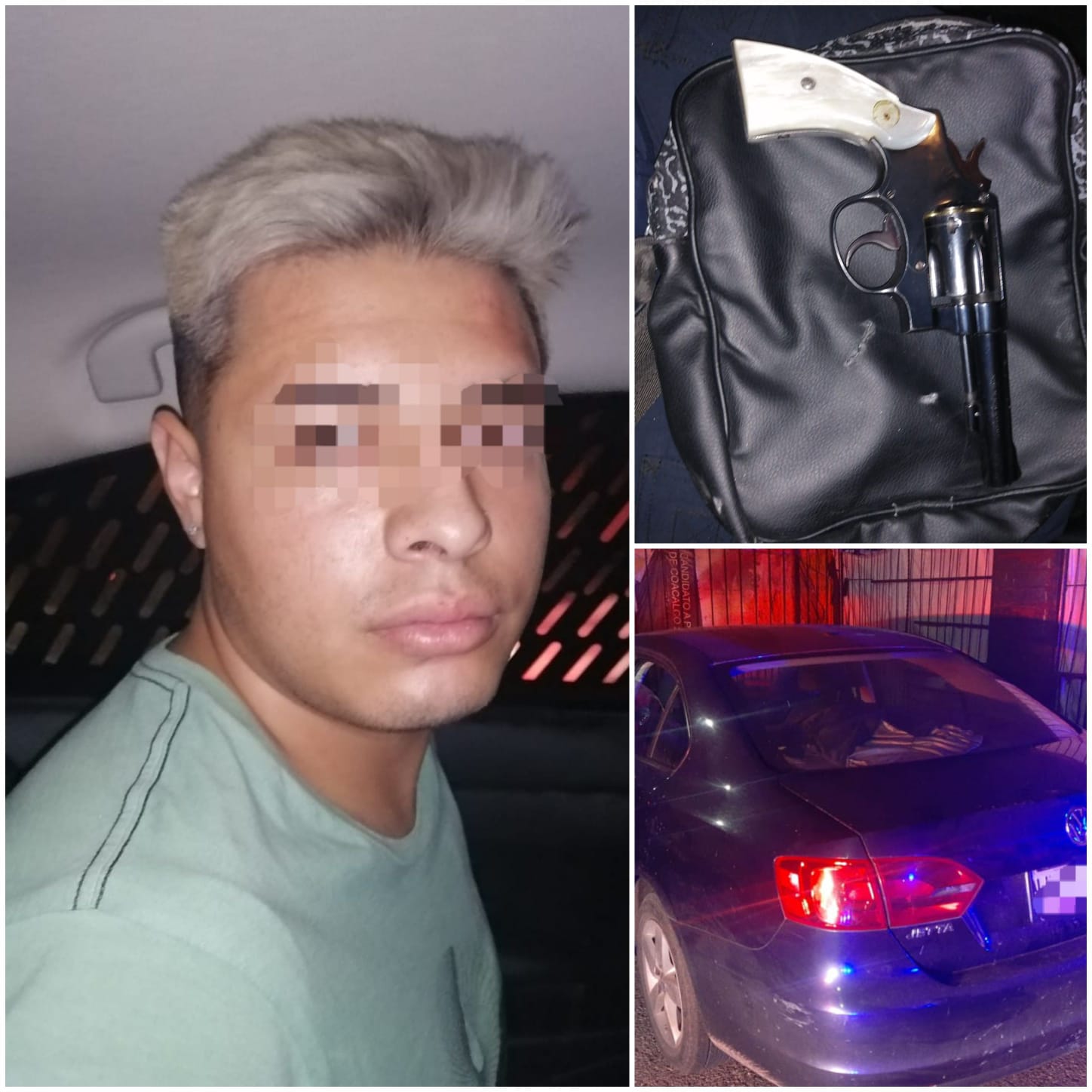 Al realizarle una revisión, los policías le encontraron en la cintura un arma de fuego tipo revolver calibre 38 color negra con cacha blancas, con cinco cartuchos útiles.