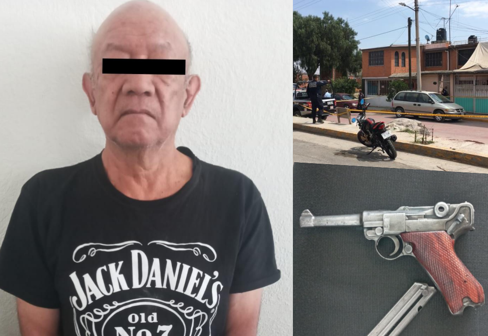 ECATEPEC (07 MARZO 2022). – Un hombre de la tercera edad fue detenido por elementos de Dirección de Seguridad Pública y Tránsito de Ecatepec luego de ser encontrado presunto responsable de haber disparado un arma de fuego en contra de su esposa.