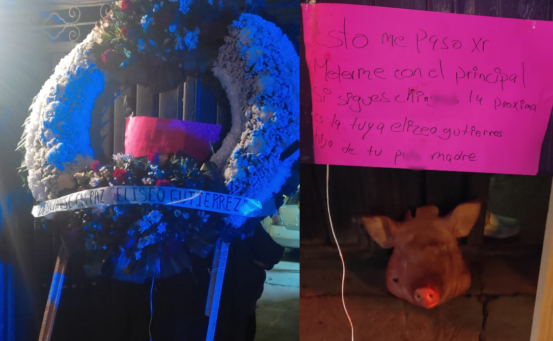 Además, en el lugar se encontró una cartulina fosforescente con el texto: «ESTO ME PASO XR METERME CON EL PRINCIPAL SI SIGUES CHINGANDO LA PRÓXIMA ES LA TUYA ELISEO GUTIÉRREZ HIJO DE TU PUTA MADRE».