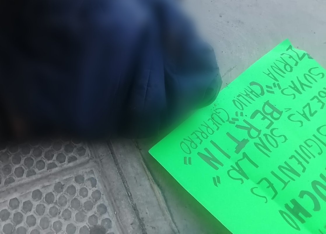 Fue cuando los oficiales realizaban recorridos por la Avenida Reclusorio en la Colonia Santa María Chiconautla del municipio de Ecatepec que observaron en la entrada del penal los tres cuerpos junto a una cartulina color verde con la leyenda “SIGUETE SINTIENDO MUY VERGA CHUCHO LAS SIGUIENTES CABEZAS SON SUYAS VERTIN ZERNA, CHALIO GUERRERO”.