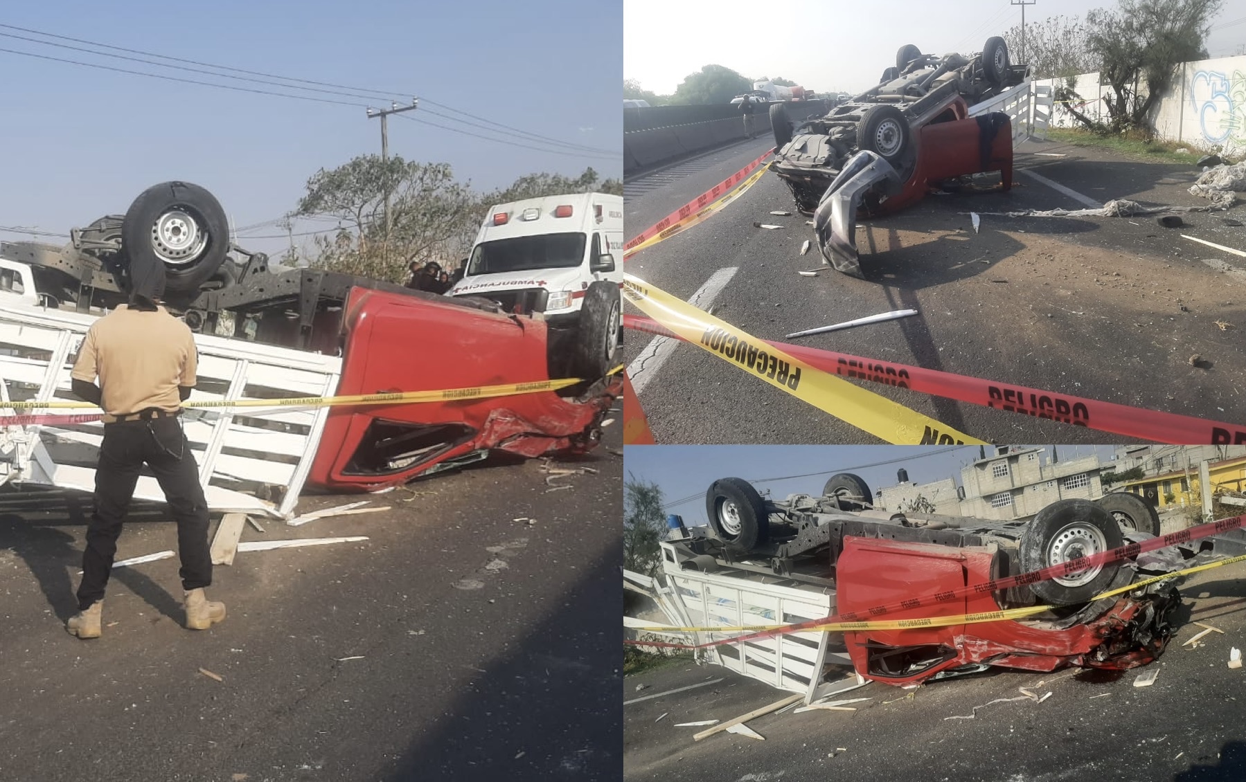 Uno de los vehículos involucrados fue una camioneta de redimas tipo “estaquitas” con placas de circulación del Estado de México LE60061 que, de acuerdo con primeros reportes habría perdido el control y tras dar varias volteretas terminó volcada, sin embargo, como transportaba a personas en la parte trasera, estas salieron disparadas.