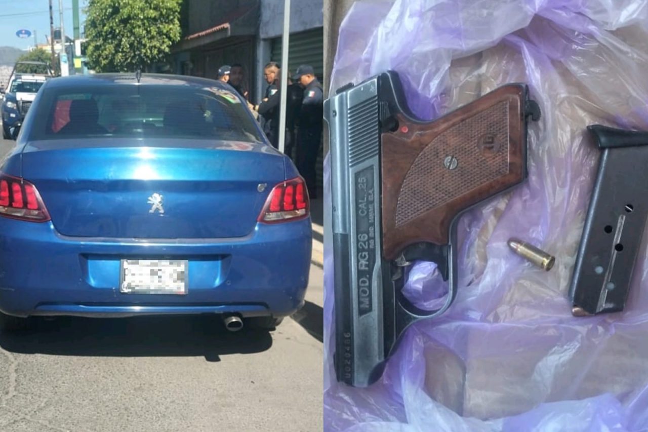 Ahí, les realizaron una inspección y encontraron que el sujeto portaba un arma de fuego tipo escuadra abastecida con cartuchos útiles calibre .25.