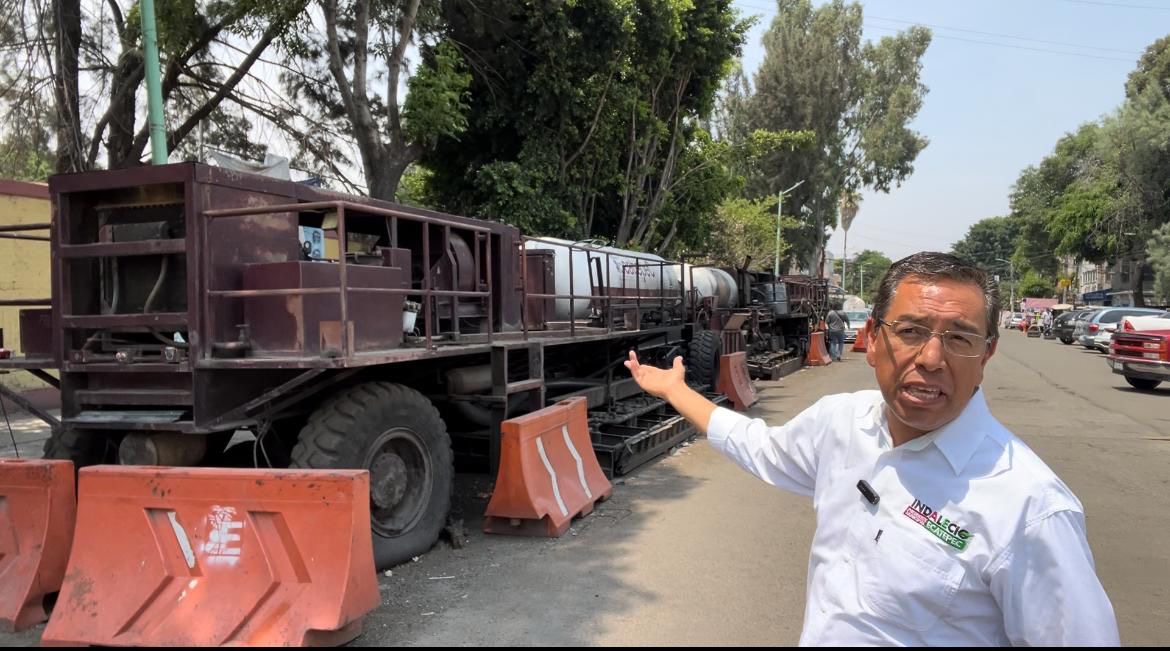 Denuncia Indalecio Rios abandono de máquina asfaltadora en Ecatepec