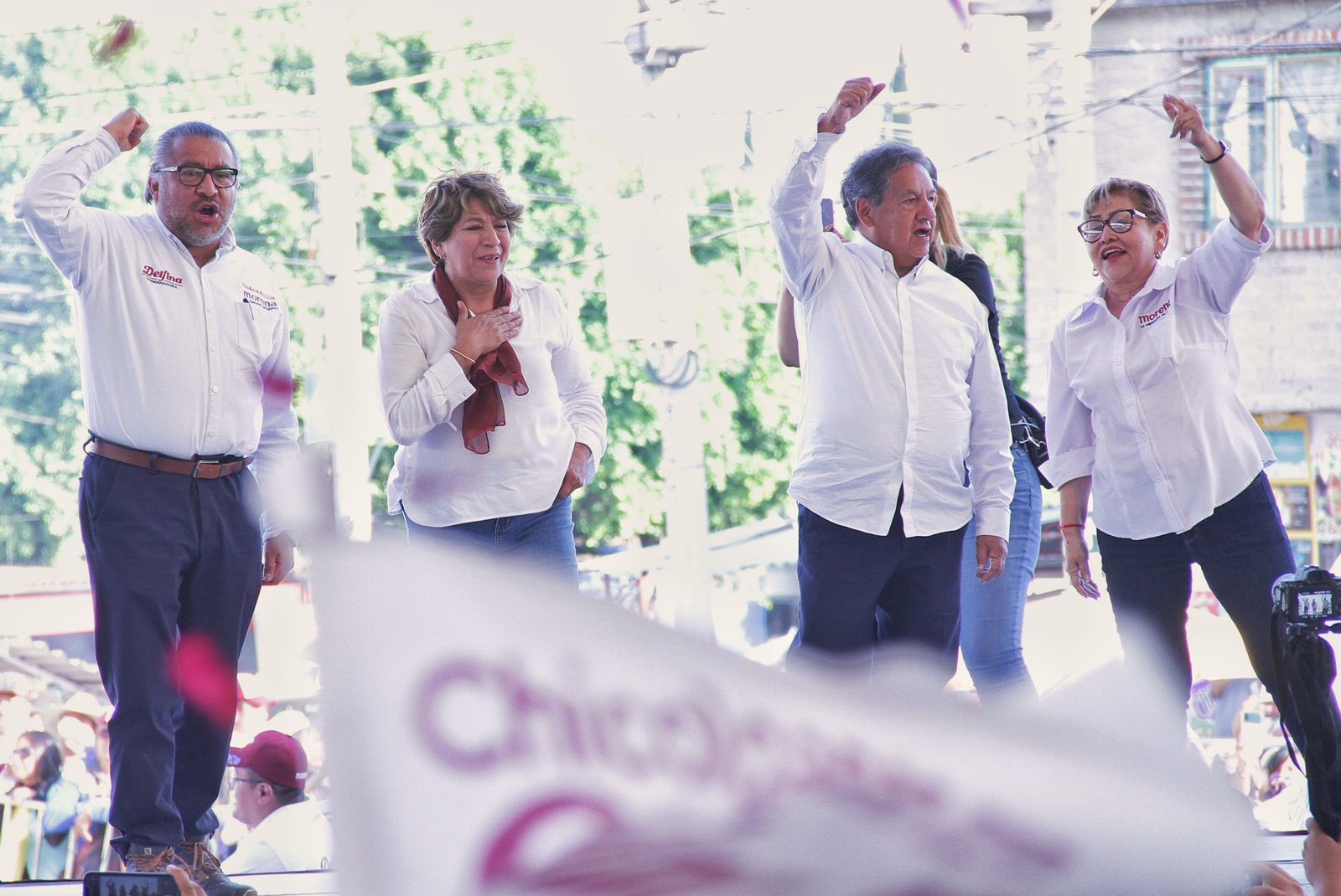 “En el combativo municipio de Chicoloapan acudieron para demostrar quien va ganar la elección el próximo 4 de junio, por eso todo nuestro reconocimiento a todos ustedes porque son ustedes los que hacen posible que hoy encabecemos las encuestas 20 puntos arriba a favor de la maestra Delfina”, afirmó el delgado especial de Morena, Higinio Martínez.