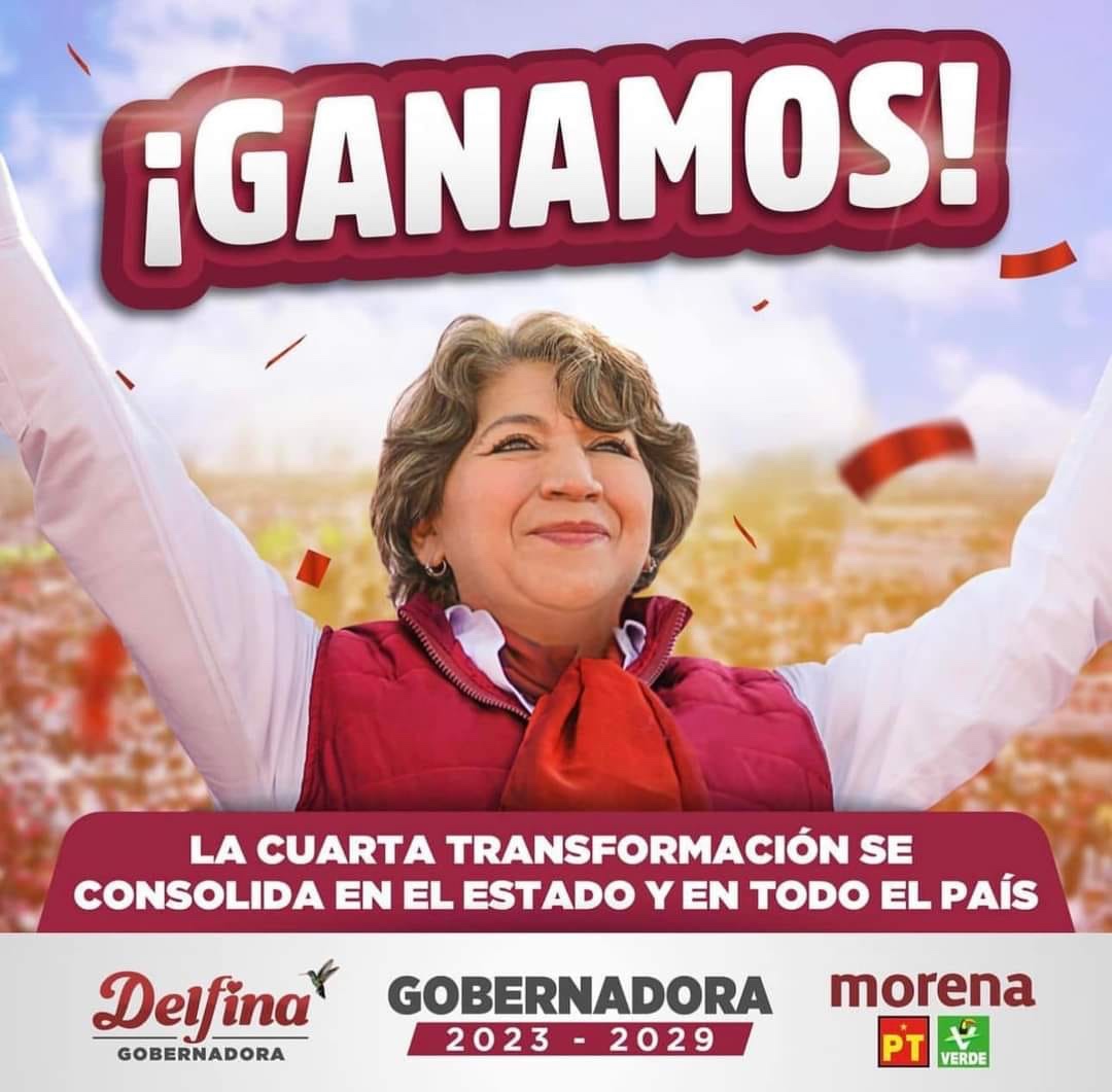 ESTADO DE MÉXICO (04 JUNIO 2023). – Ganamos! Esta es la victoria del pueblo mexiquense, vamos a trabajar y gobernar por el bienestar de todas y todos”, aseguró la próxima gobernadora del Estado de México, Delfina Gómez, al celebrar su triunfo en la contienda electoral.