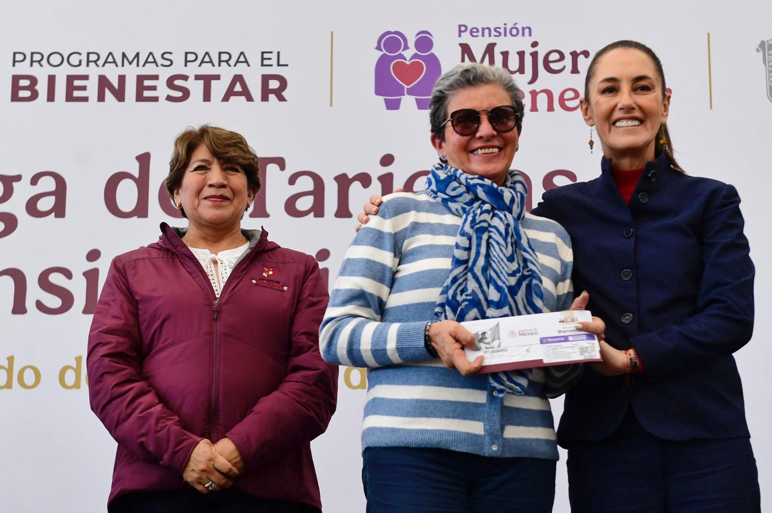 ESTADO DE MÉXICO (3 ENERO 2025). – En respuesta a quienes más lo necesitan y en un acto de justicia para las mujeres, la Presidenta Claudia Sheinbaum Pardo y la Gobernadora Delfina Gómez Álvarez iniciaron la entrega de las tarjetas Pensión Mujeres Bienestar y Pensión para el Bienestar de las Personas Adultas Mayores, para mejorar las condiciones de vida y autonomía económica de un millón 626 mil 925 mujeres del Estado de México.