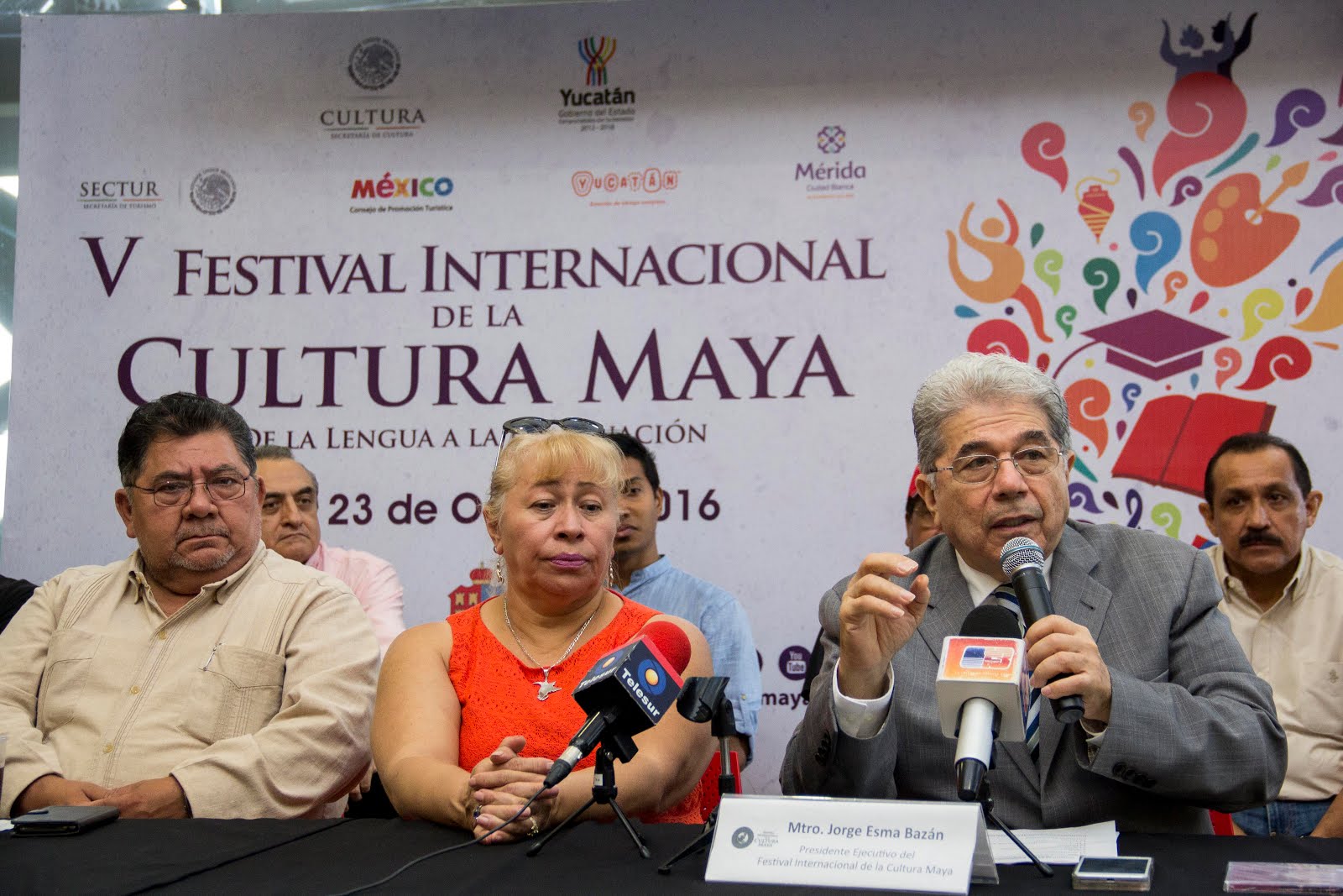 En conferencia de prensa realizada en el Gran Museo del Mundo Maya de Mérida (GMMM), el presidente ejecutivo del FICMaya, Mtro. Jorge Esma Bazán presentó a los artistas, creadores y conferencistas yucatecos que participarán en el Festival, resaltando que el espacio dedicado a ellos, es el resultado del valor sustantivo que Mérida tiene en la historia de México; ya que representan al estado anfitrión del único Festival que celebra a la Cultura Maya:
