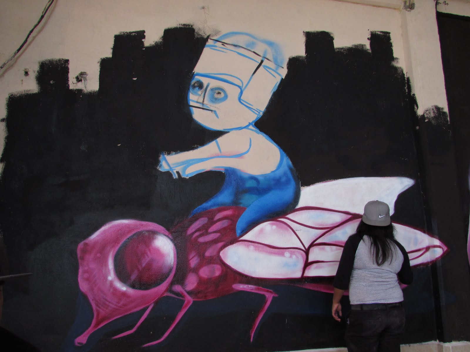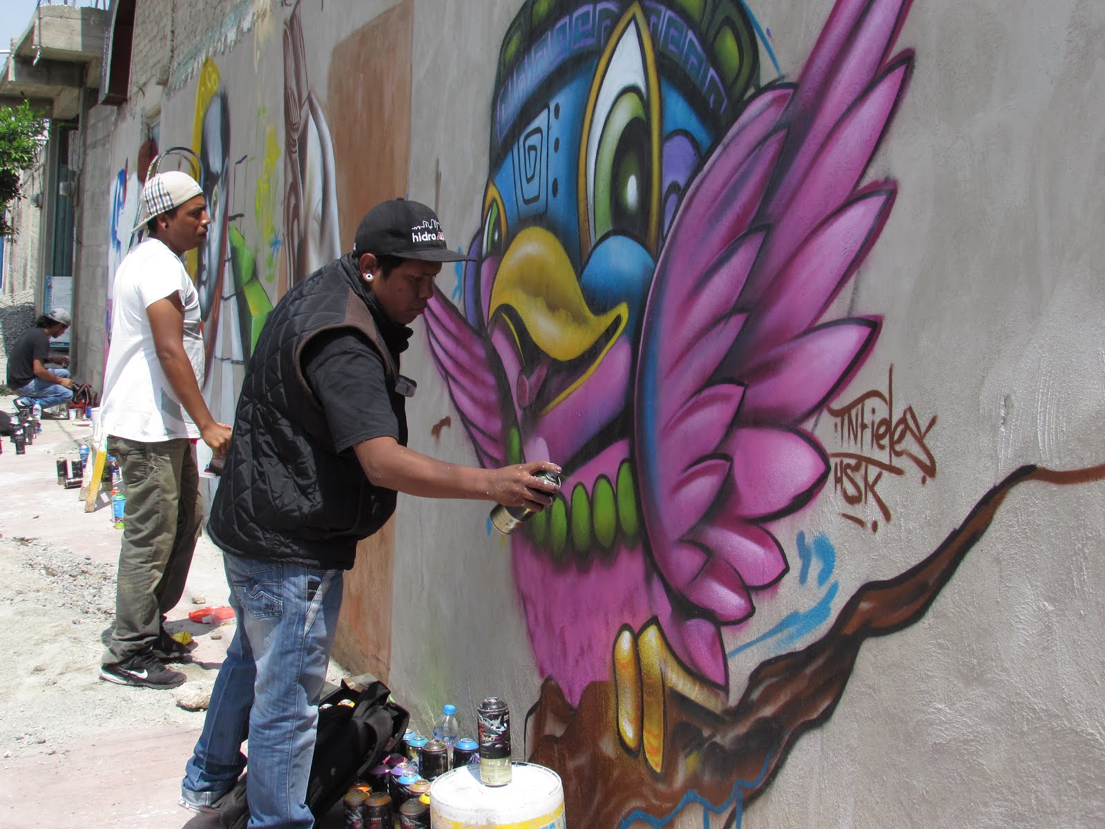 Armando Rivera a sus 31 años, lleva 5 años de grafitero y 17 de aerógrafo, originario del estado de Jalisco, inicia su oficio desde 1999; Para llevar acabo su boceto, necesita aproximadamente 10 aerosoles de diferentes colores que darán vida a un simple dibujo de papel y que posteriormente será observado por ciento de peatones y automivilistas en la zona.