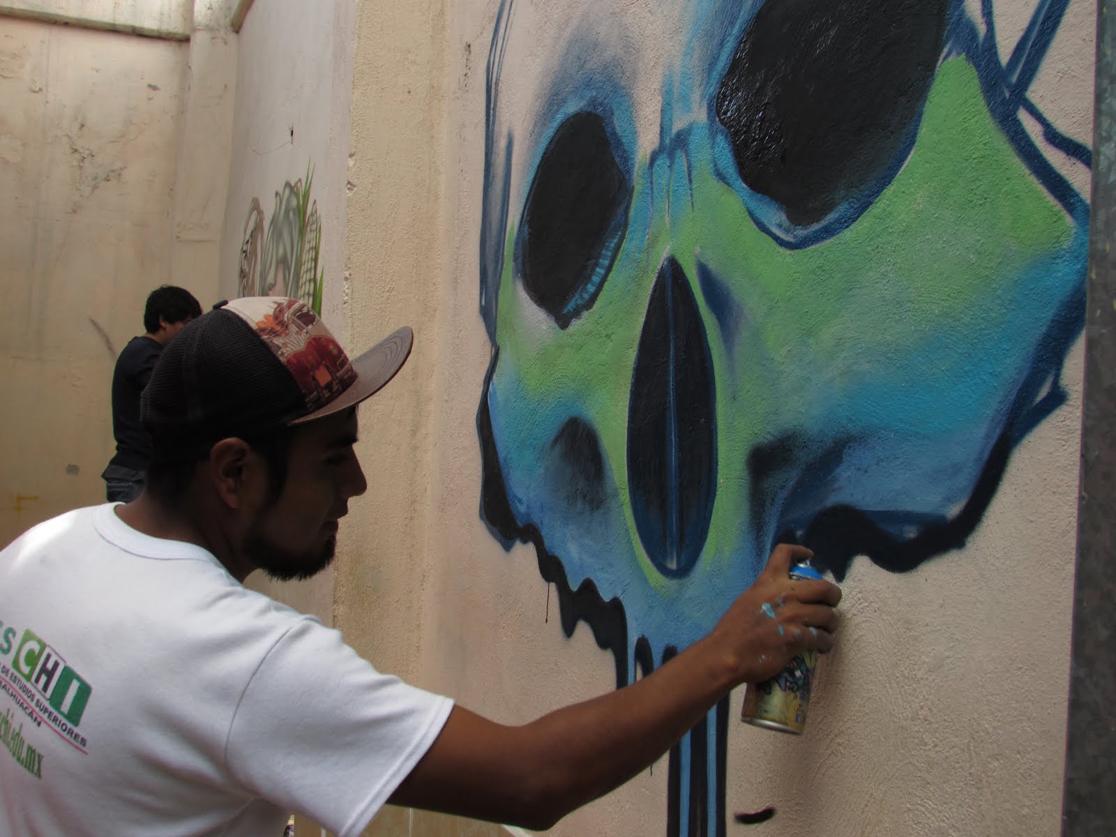 Chimalhuacán, Méx., 22 de Agosto del 2016.- Cerca de 27 grafiteros de Ecatepec, Texcoco, Chimalhuacán, Los Reyes La Paz, Nezahualcóyot y  Chiconcuac, se dieron cita esta mañana en la pista «Jessy» ubicada en calle Topógrafos y Av. Arca de Noé para expresar de diferente manera sentimientos, acontecimientos y arte en general en la Expo-Graffiti.