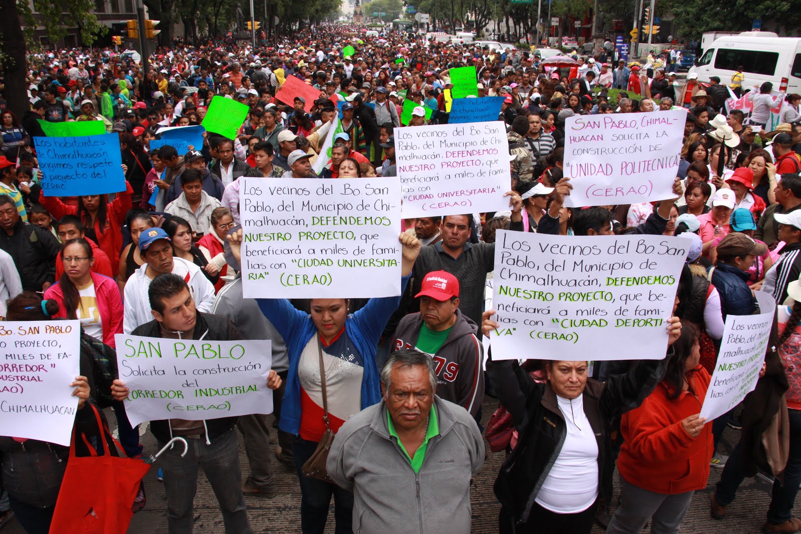 Chimalhuacán, Méx., 09 de Agosto de 2016 (Raúl Martínez).- Esta mañana, más de 10 mil personas participaron en una movilización en la Ciudad de México para protestar a favor del Centro Estratégico de Recuperación Ambiental del Oriente (CERAO) el cual estará formado por un parque industrial, una unidad deportiva con más de 40 canchas y un campus universitario.