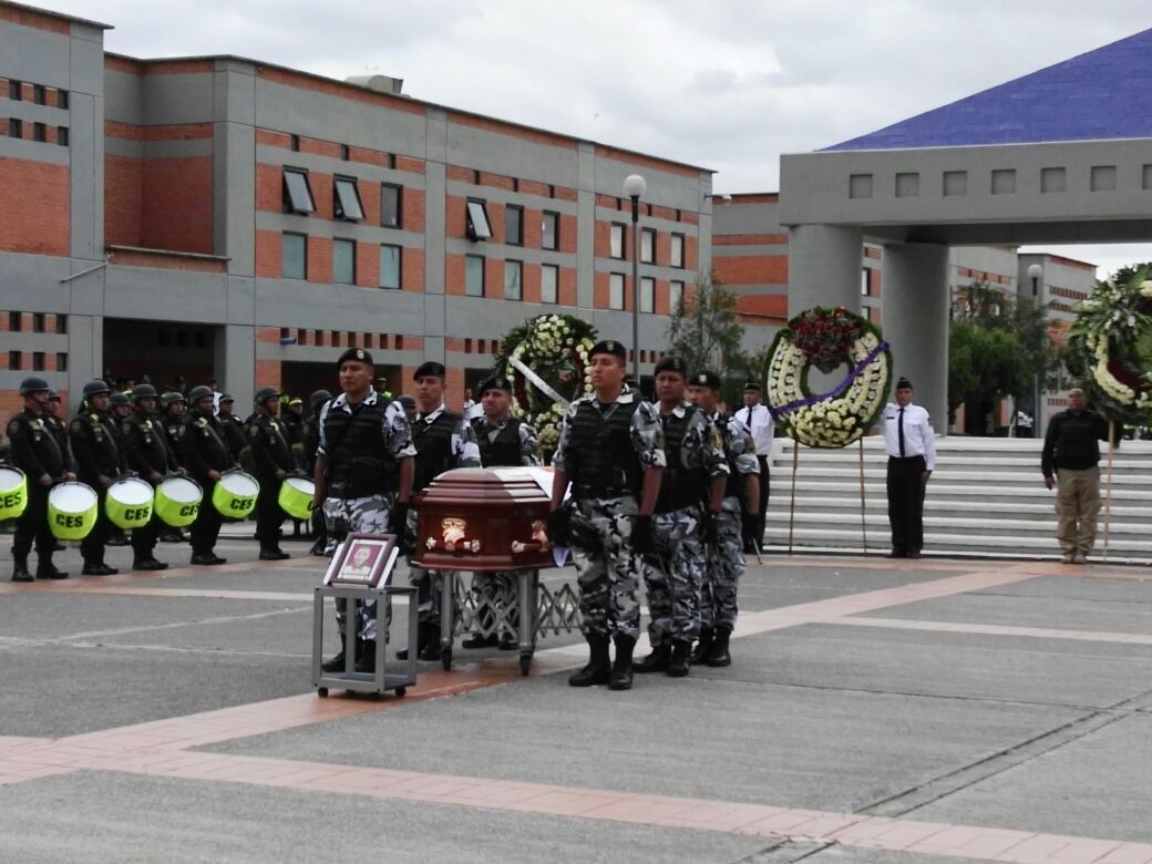Eduardo Valiente Hernández, Comisionado Estatal de Seguridad, encabezó el homenaje póstumo a Mirna Esmeralda Guerrero Ramírez, de 24 años de edad, quien murió el pasado jueves 4, cuando sujetos armados a bordo de un vehículo Chevrolet tipo Chevy color blanco dispararon contra contra los tripulantes de la patrulla 4738 del agrupamiento de Transporte en la Colonia Valle de Guadalupe Xalostoc; Resultado de ello, horas más tarde, en el hospital murió la elemento de la policía, mientras su compañero es reportado como grave.