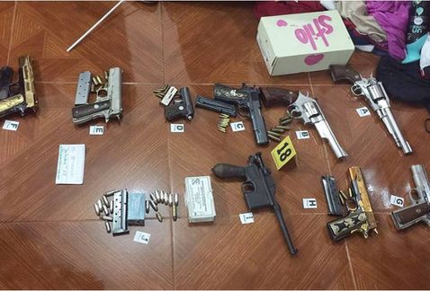 En el inmueble cateado fueron detenidas dos personas, un hombre y una mujer, y se aseguraron: 14 armas cortas, una escopeta, 900 cartuchos de diversos calibres, 65 mil pesos, aproximadamente mil dólares y dos vehículos, cada uno con un arma larga en su interior.