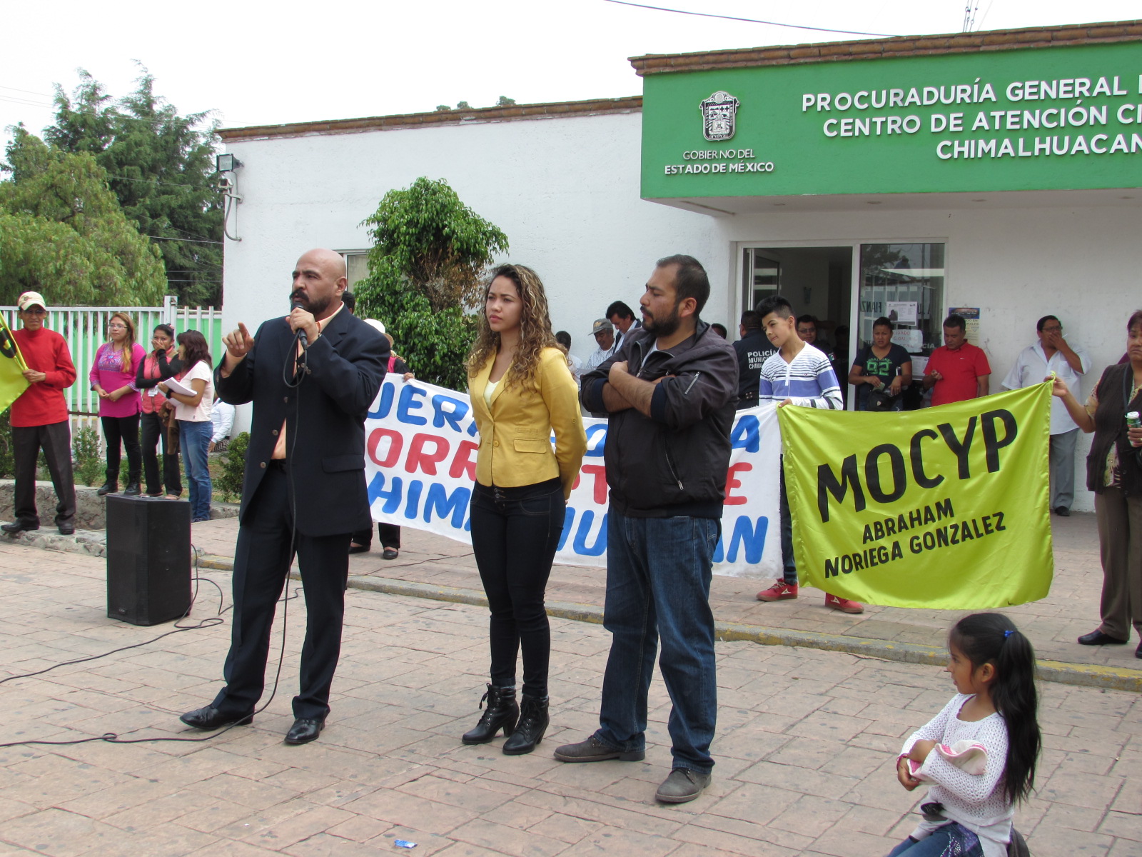 Chimalhuacán, Méx.,21 de Mayo de 2016.- Cerca de 80 personas encabezadas por Abraham Noriega González, la diputada por el distrito 31 de La Paz-Chimalhuacán, Yomali Mondragón Arredondo y por el diputado del distrito 40, José Antonio López Lozano, iniciaron esta mañana una cadena humana en protesta por presuntas irregularidades del Centro de Atención Ciudadana en donde acusan, el Ministerio público es deficiente ante los delitos y homicidios dolosos que se cometen en Chimalhuacán.