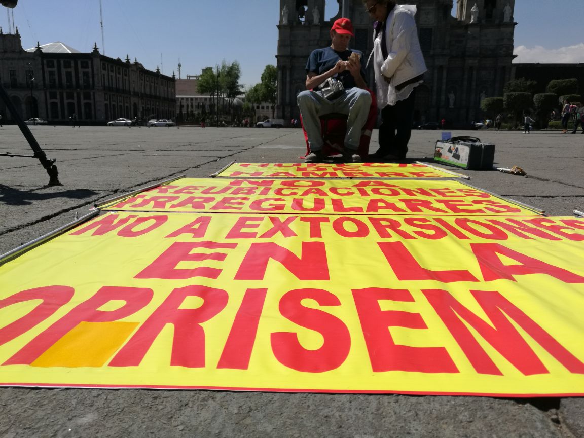 TOLUCA (20 marzo 2018).- El verificador sanitario de la Comisión para la Protección contra Riesgos Sanitarios del Estado de México (Coprisem), Mario Aguilar, inició este martes una huelga de hambre en la Plaza de los Mártires, frente a palacio de Gobierno estatal, en Toluca.
