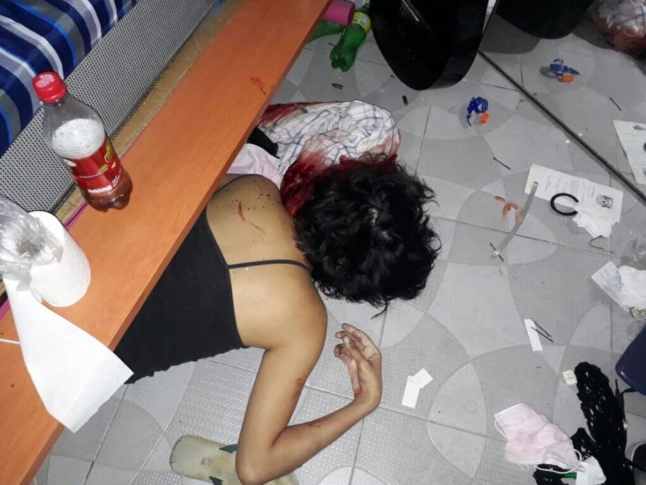La victima fue localizada en el piso entre un charco y con hojas blancas que tenian logotipos de la UNAM.