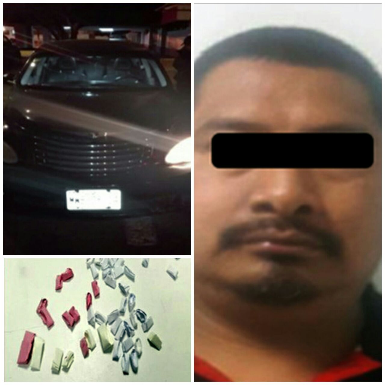 Amador Amador indicó que, al aproximarse los elementos de seguridad al automóvil, el conductor denotó nerviosismo y trató por todos los medios de evitar la revisión, sin embargo, los oficiales atentos a su labor inspeccionaron el vehículo y posteriormente al sujeto, encontrándole entre los genitales una bolsa plástica con 48 dosis de cocaína en piedra empaquetadas para su venta, motivo por el cual fue arrestado en el acto.