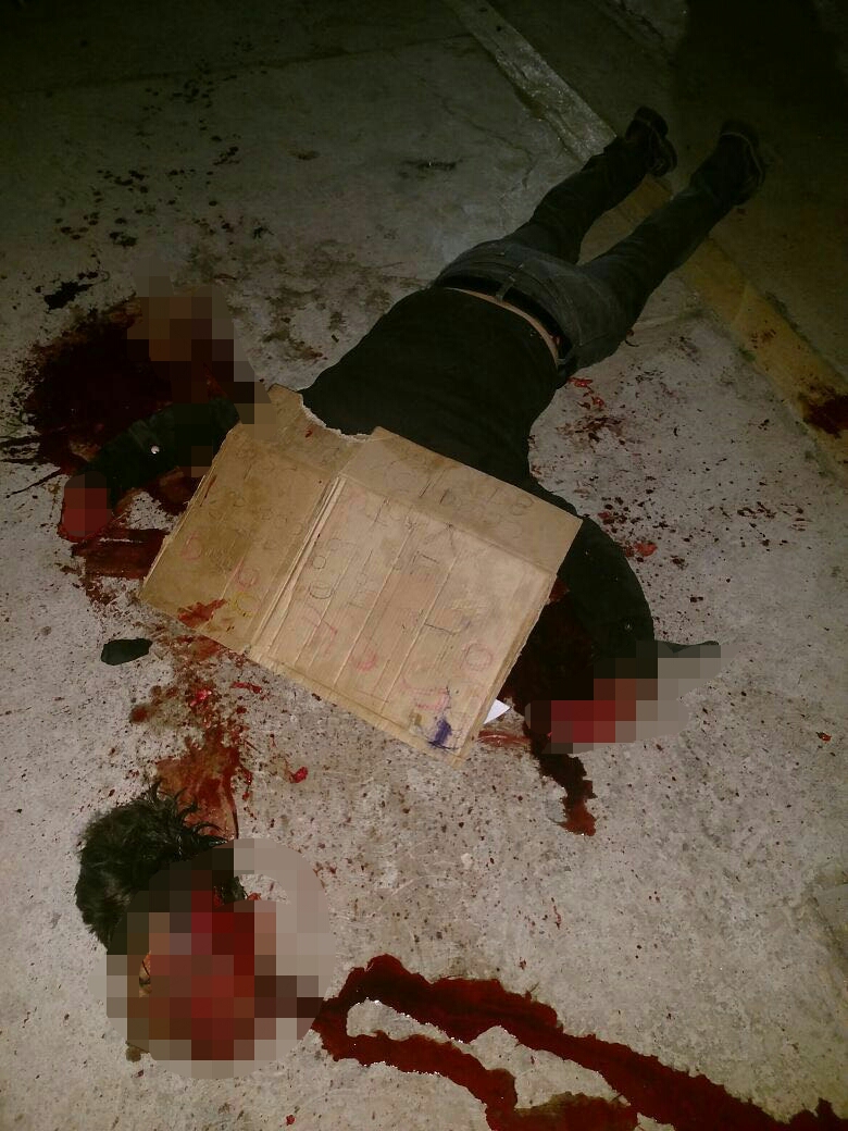 Sobre el tronco de la víctima, aún ensangrentada, los sicarios dejaron una nota de advertencia escrita en un cartón de color café.