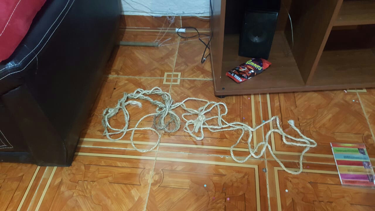 lazo de tendedero amarrado a una varilla de fierro dentro de su domicilio.