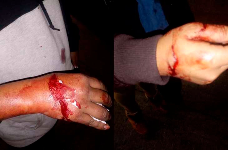 las manos y le rasgan la palma de la mano y algunos dedos de la otra mano por taparse