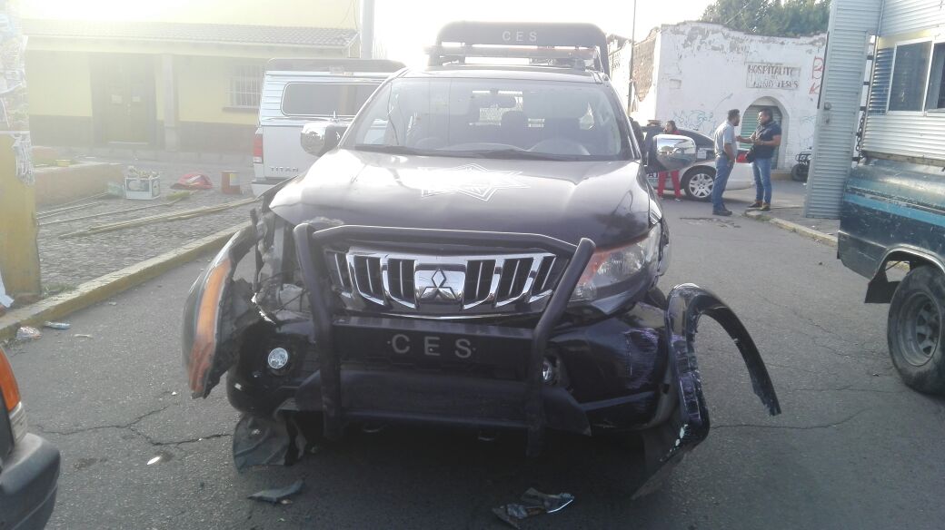 patrulla de Chicoloapan, sin placas de circulación ni número económic.