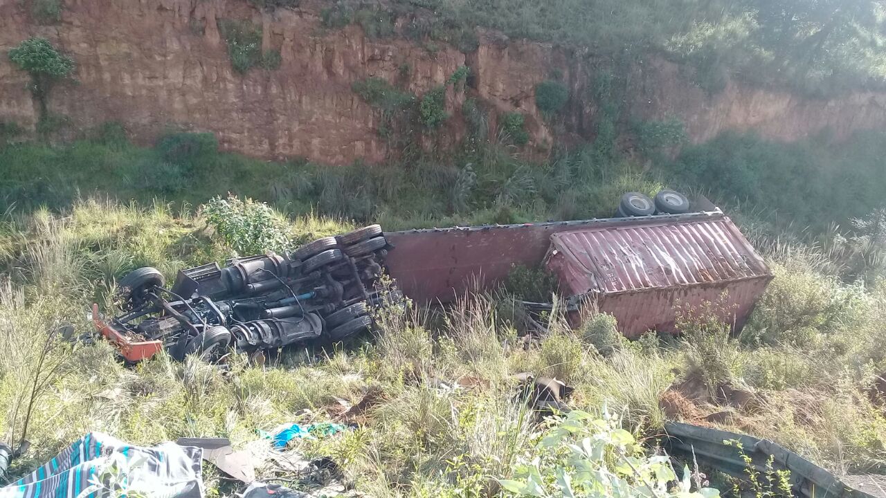 marca Kenworth placas 555DL2 y remolque con placas 934WE7, cargado de arroz, cayó al precipio a la altura del kilómetro 42+100.