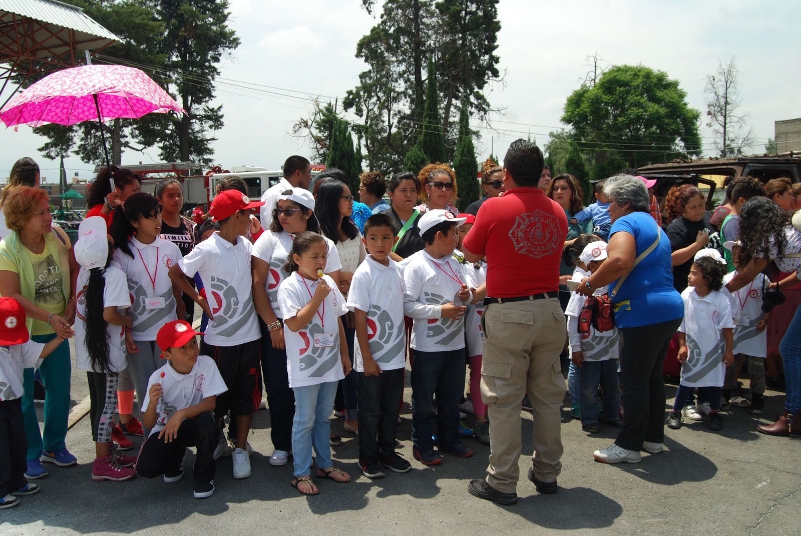 Oswaldo Ibáñez Nuñez, oficial del cuerpo de bomberos, explicó a niños y niñas y padres de familia que estuvieron durante el cierre de este curso, en la subestación de la unidad habitacional Los Héroes sobre las acciones que pueden seguir ante un siniestro.