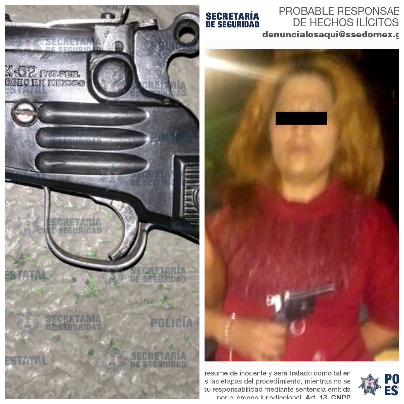 Por el delito de portación ilegal de arma de fuego, y a petición de parte, la imputada fue trasladada y puesta a disposición de la Fiscalía General de Justicia del Estado de México (FGJEM) para definir su situación legal.