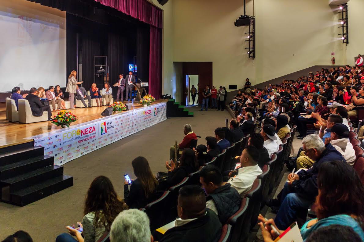 NEZAHUALCÓYOTL (13 julio 2017).- Para fortalecer las medidas de protección a los derechos de las mujeres y niñas en Nezahualcóyotl, el gobierno municipal llevó a cabo el foro «Neza por una Ciudad de Niñ@s y Mujeres Sin Violencia» donde el alcalde Juan Hugo de la Rosa García junto a expertos y destacadas figuras en el ámbito, como la activista Rosy Orozco, buscaron estrategias que sumen a prevenir la violencia de género y a mejorar los protocolos municipales y estatales de reacción ante la misma.