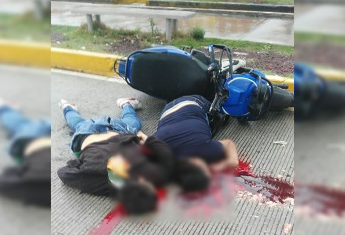 Reportes de la Policía señalan que un auto Sedan color negro que también invadió el sendero exclusivo embistió a las víctimas, quienes viajaban en una motoneta Italika color azul sin placas y no portaban el casco reglamentario.