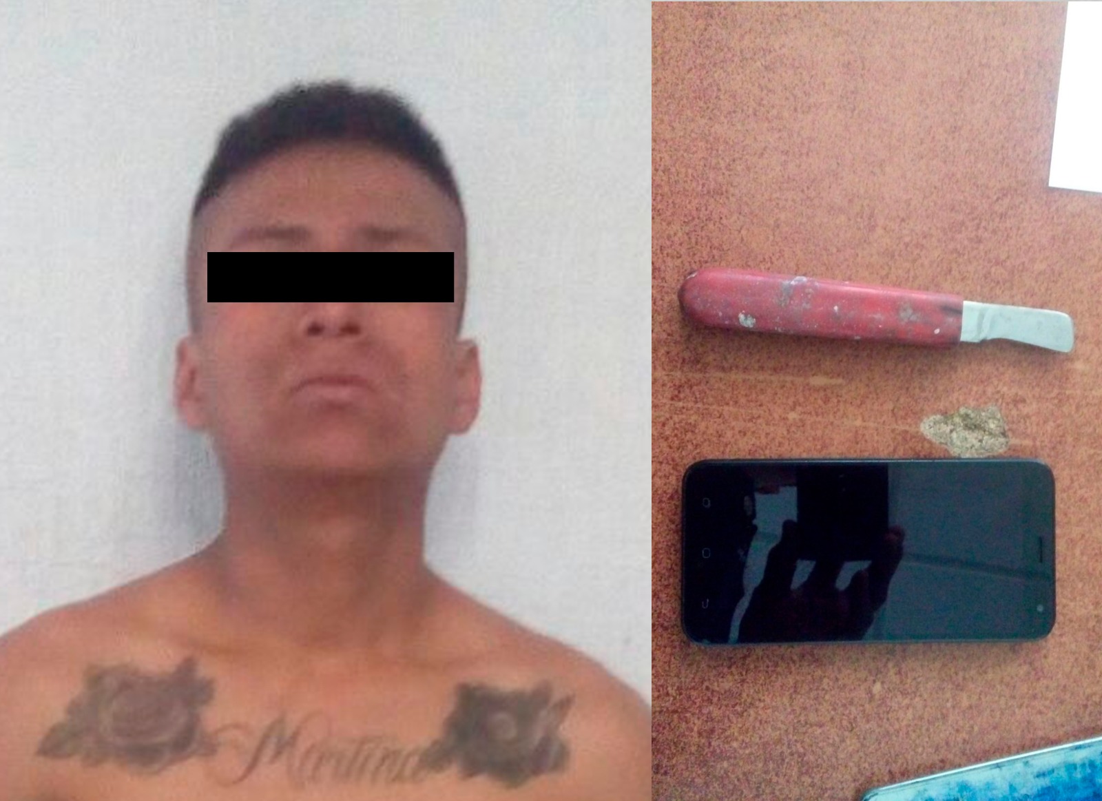 “De inmediato aplicaron protocolos de seguridad para neutralizar las agresiones. Luego de una breve persecución capturaron a Miguel Ángel N de 23 años de edad, quien al realizarle la revisión preventiva le fue encontrado el teléfono celular de su víctima, además de que en el bolsillo derecho de su pantalón portaba un arma punzocortante”