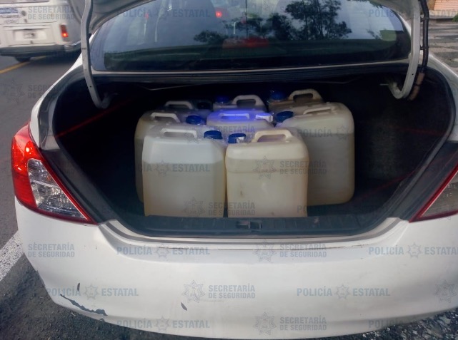 Al practicarle una revisión de rutina, los efectivos de la SS localizaron en el interior del automóvil 255 litros de líquido con características similares al hidrocarburo, al parecer gasolina, distribuídos en diez garrafones de 20 litros, uno más con capacidad para 30 litros y otro para 25, sin acreditar su legal procedencia y posesión.