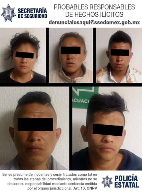 IXTAPALUCA, Méx., 22 de julio de 2018.- Momentos después de que perpetraran un probable asalto a mano armada contra un transeúnte, cinco personas fueron aprehendidas por elementos de la Secretaría de Seguridad (SS).